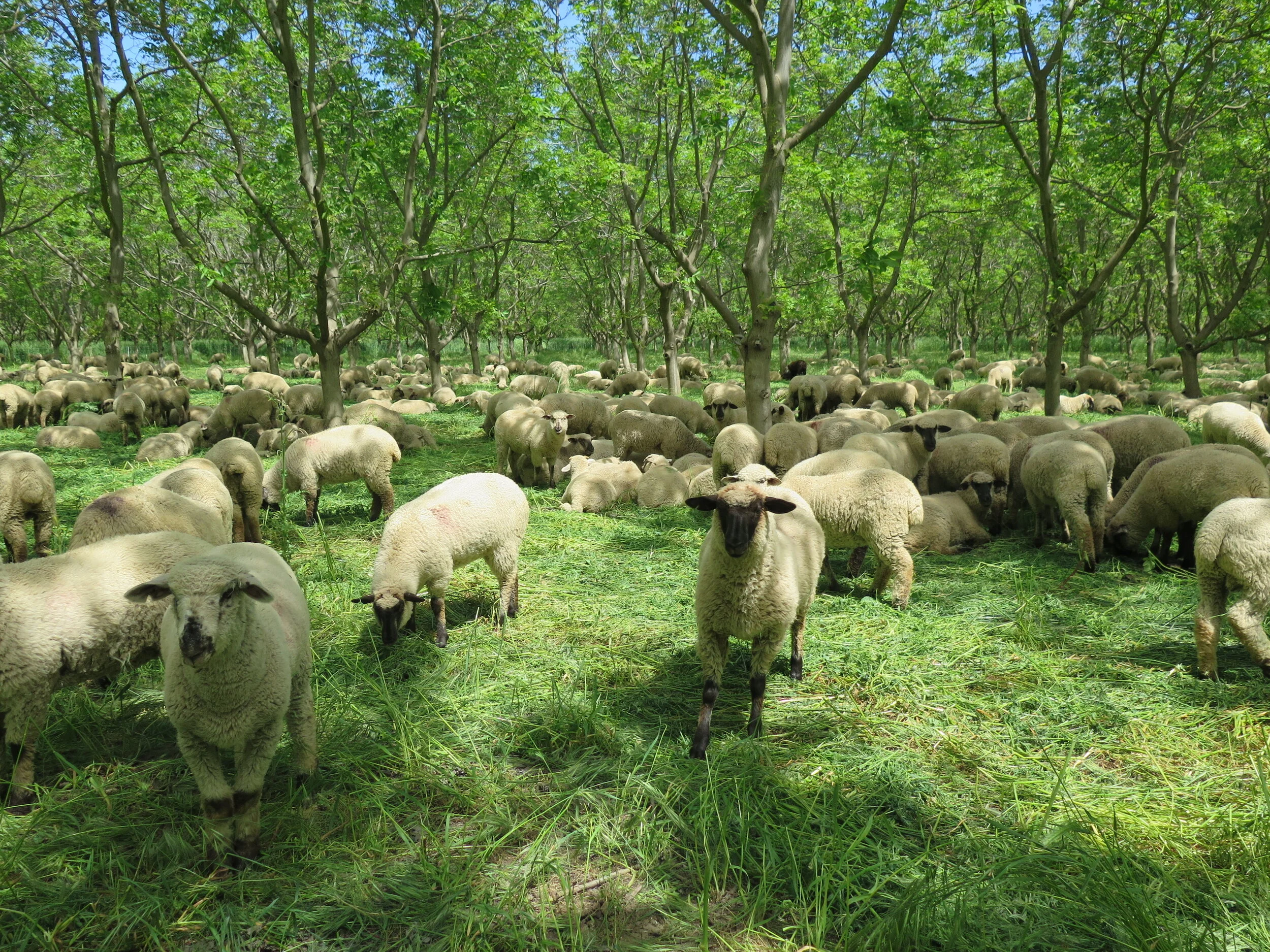 Farming with minimally tilling the orchard floor is one of several practices we use to increase soil health and carbon sequestration. We graze, mow, and roller-crimp to control for weeds and manage our cover crops, significantly reducing the need to till our soils. By implementing no-till/low-till practices, beneficial microbes and mycorrhizal fungi are able to flourish. Further, by leaving crop residue on the surface and not disturbing the soil structure, soil organic matter is preserved which aids in water retention and carbon sequestration.